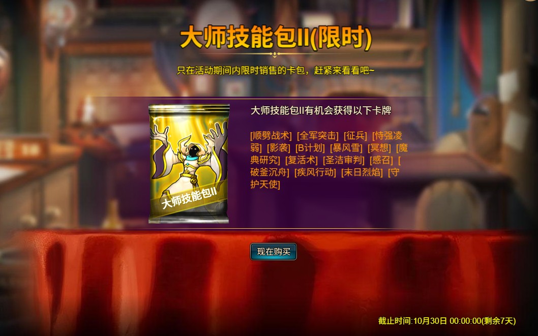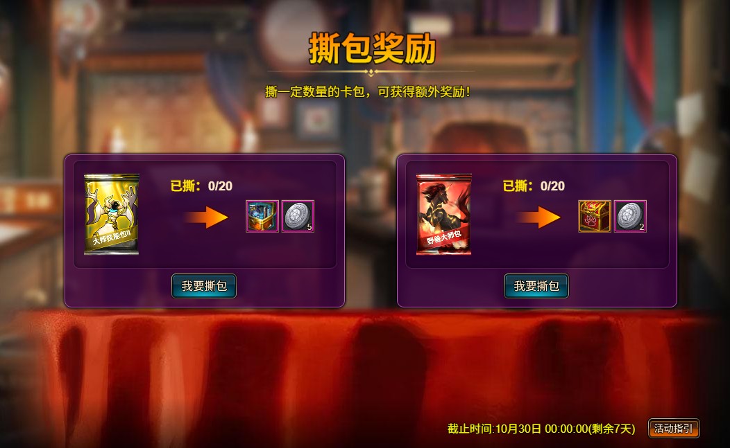 20包大师技能包II - 卡盒礼包(史诗)*1/银币*500,000