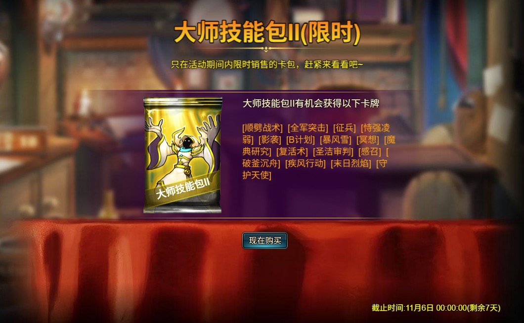 20包大师技能包II - 卡盒礼包(史诗)*3 / 银币*500,000