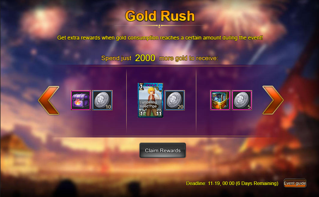 Consume 5,000 gold coins:Mega Cards Box*1(Epic),Silver*500,000