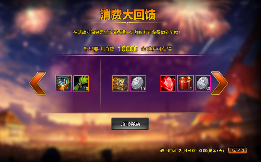 消费30000金币:逆天炼金石*1,月光宝箱(史诗)*2,银币*3,000,000