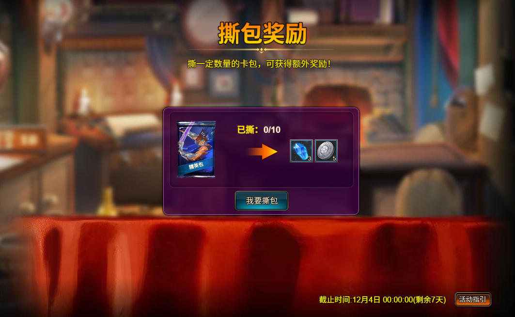 消费5000金币:卡盒礼包(史诗)*1,高级牧草*10