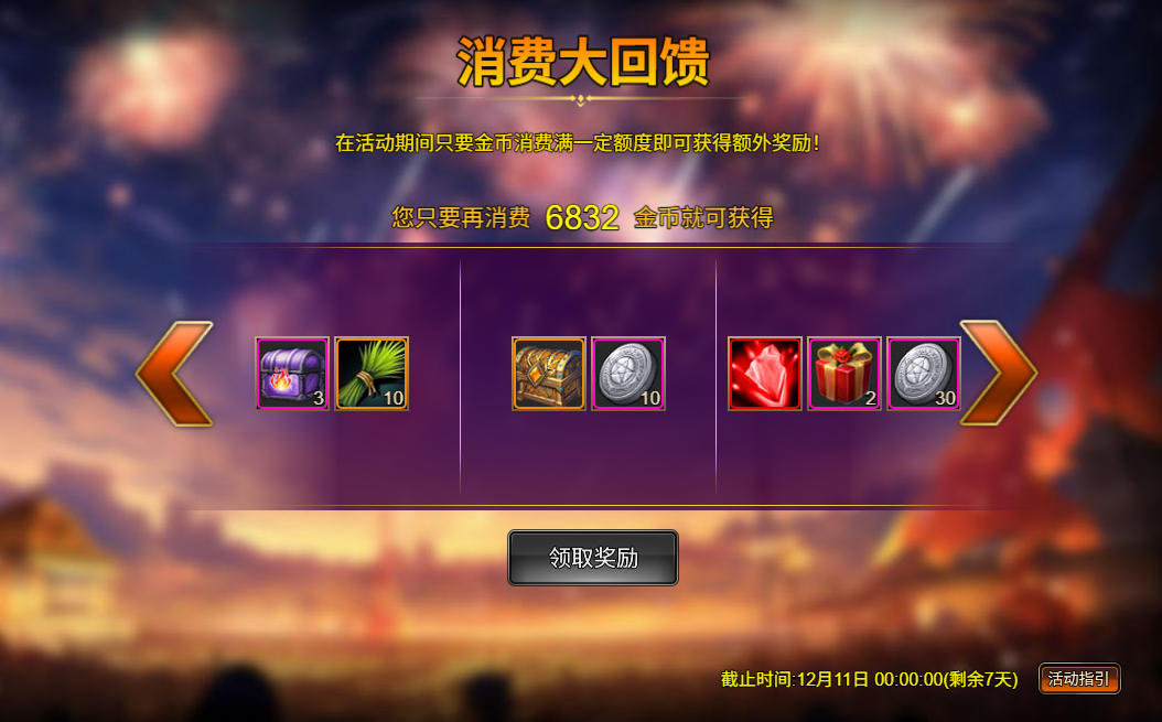 消费30000金币:逆天炼金石*1,月光宝箱(史诗)*2,银币*3,000,000