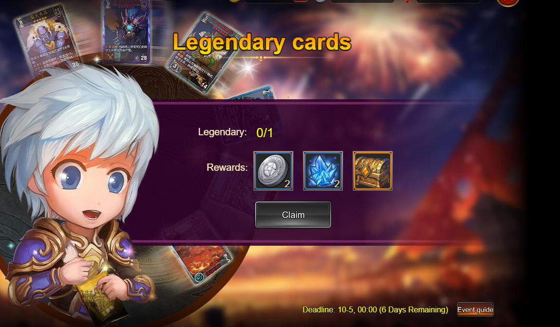 Consume 5,000 gold coins:Mega Cards Box(Epic)*3,Silver*500,000