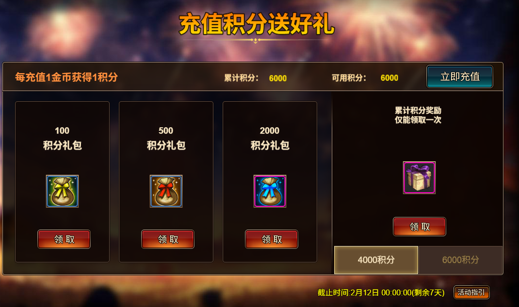 1. 充值积分送好礼: 4,000 - 铁人罗伯特礼盒*1 / 6,000 - 爱心特使零零礼盒*1