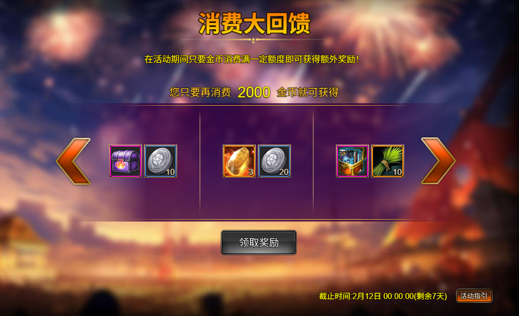 消费2000金币:四档强化石*3,银币*200,000