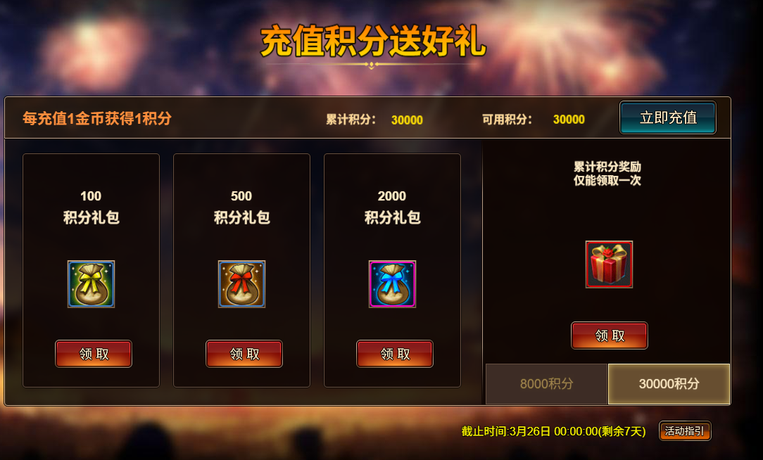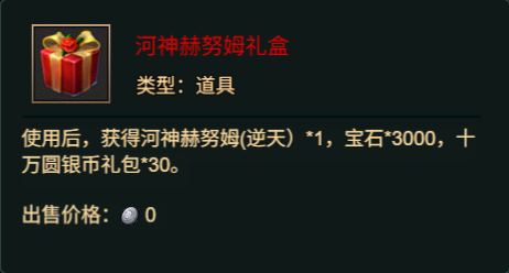 3. 充值积分送好礼:8000 - 河神赫努姆礼盒(传说)*1)*1 / 30000 - 河神赫努姆礼盒(逆天)*1