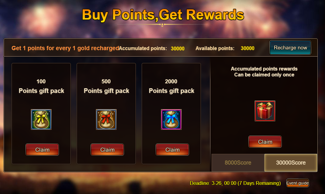 3. Buy Points, Get Rewards: 8000 - Khnum Chest (Legendary)*1 / 30000 - Khnum Chest (Godlike)*1