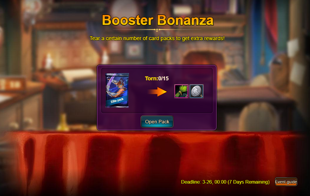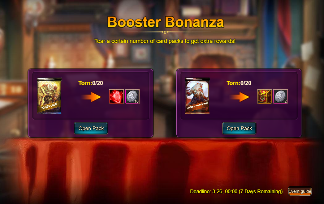 Consume 5,000 gold coins: Mega Cards Box (Epic)*1, Lush Fodder*10