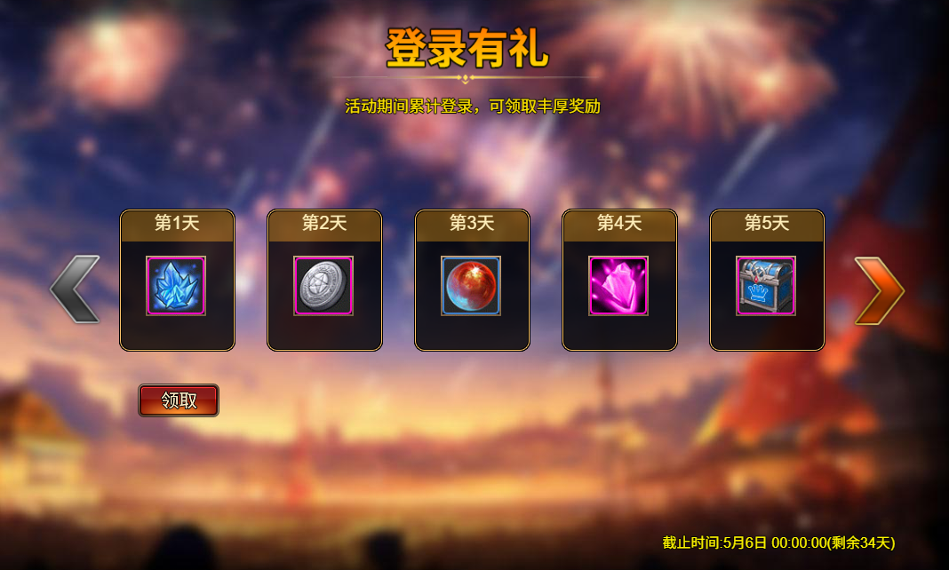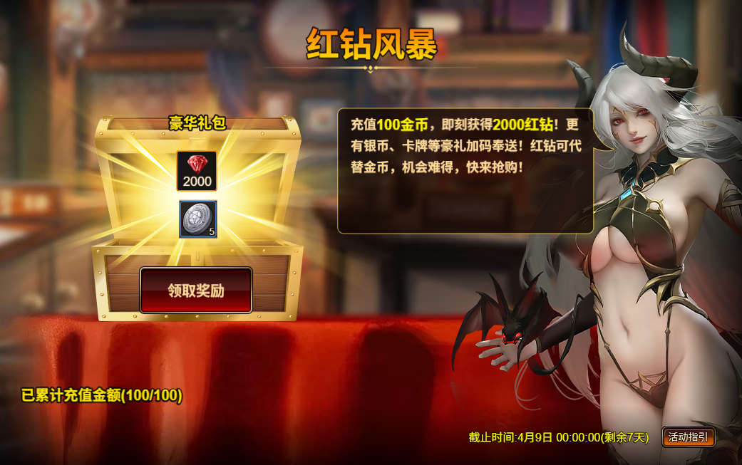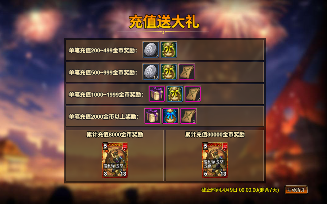 消费2000金币,四档强化石*3,万圆银币礼包*20