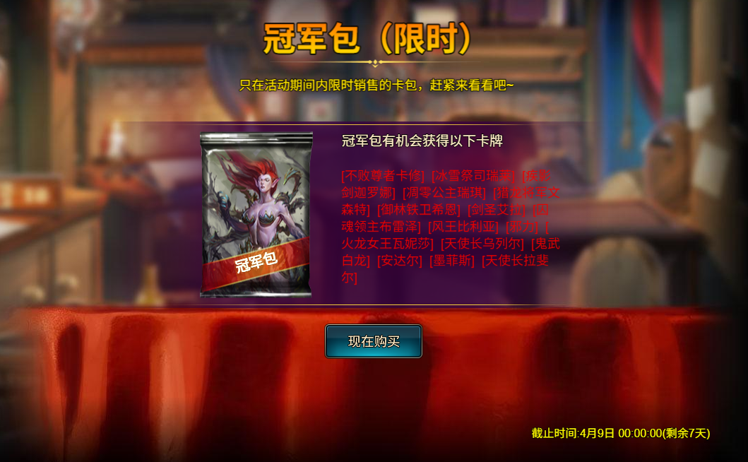 内含:王者包*2,十万银币礼包*5,技能卡盒(史诗)*2,500水晶礼包*6