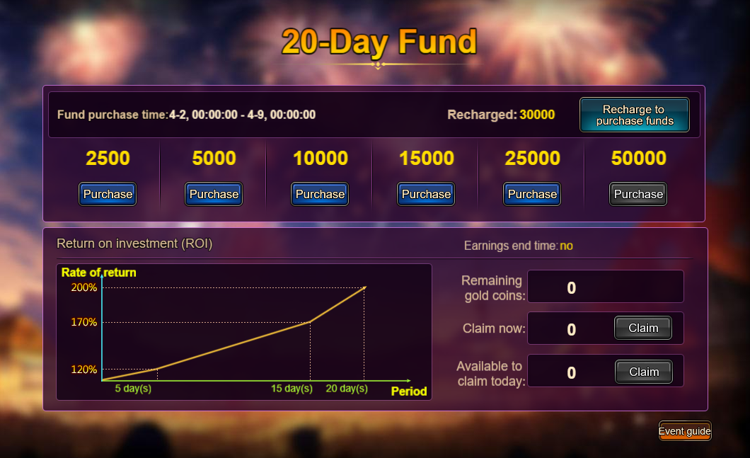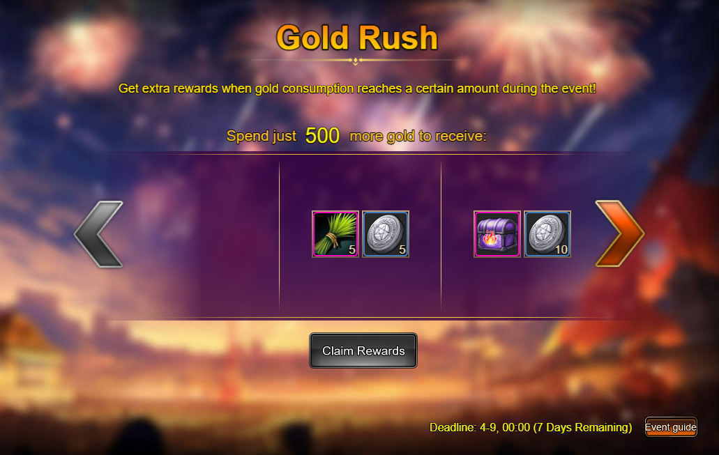 Consume 50,000 gold coins: Black Opal*1, Solar Chest (Legendary)*2, Silver*4,000,000