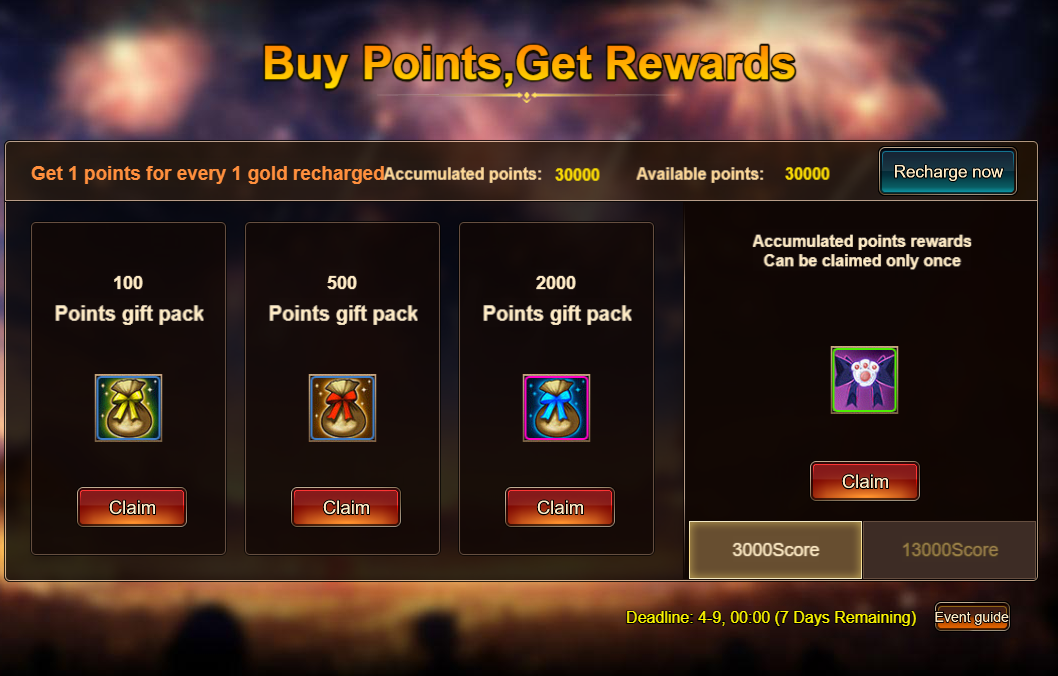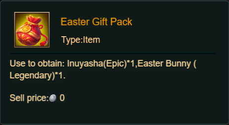 5. Buy Points, Get Rewards: 3000 - Easter Bunny (Good)*1 / 13000 - Easter Bunny (Legendary)*1 + Inuyasha (Epic)*1