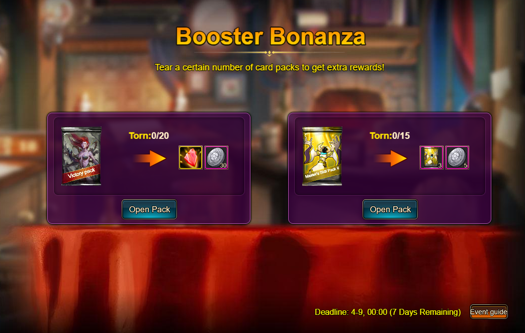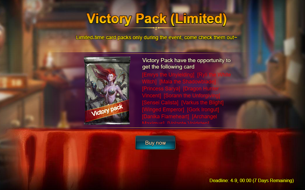 Consume 5,000 gold coins: Mega Cards Box (Epic)*1, Lush Fodder*10
