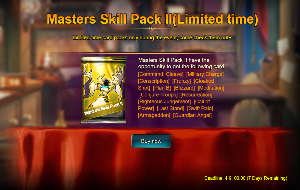 Contains: King's Pack*2, Silver *500,000 , Skill Box (Epic)*2, 500 Crystal Pack*6
