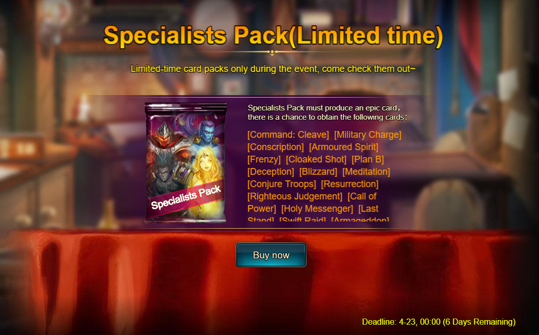 30 packs of Specialist Pack I - Elemental Fire (Legendary)*1 / Silver*500,000